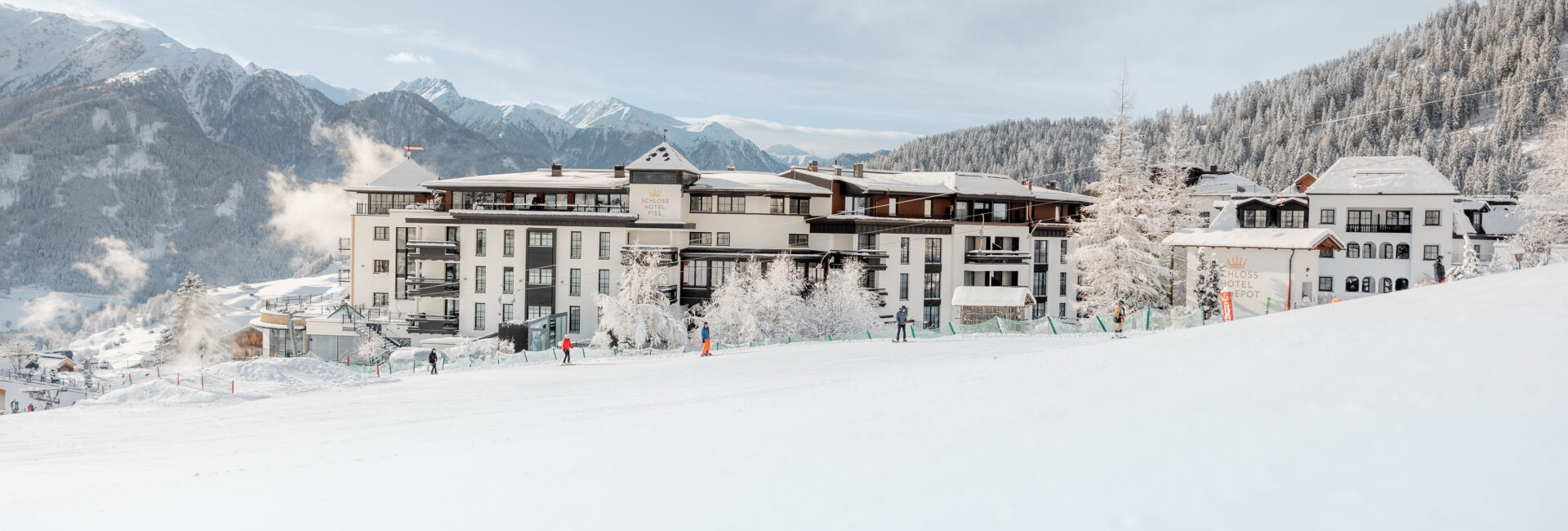 Das Schlosshotel Fiss liegt auf 1.438 Metern Seehöhe in der beliebten Ferienregion Serfaus-Fiss-Ladis und überzeugt mit direkter Lage an den Skipisten sowie einem traumhaften Panoramablick auf die Tiroler Alpen. Die Kombination aus modernem alpinem Design, luxuriösem Komfort und herzlicher Gastfreundschaft macht das Resort zu einer gefragten Adresse für Wellness-, Aktiv- und Familienurlaub in Tirol.
